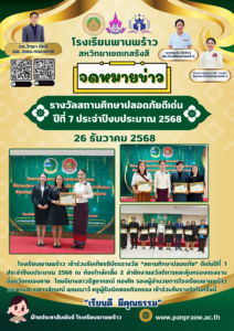 รางวัลสถานศึกษาปลอดภัยดีเด่น ปีที่ 7 ประจำปีงบประมาณ 2568